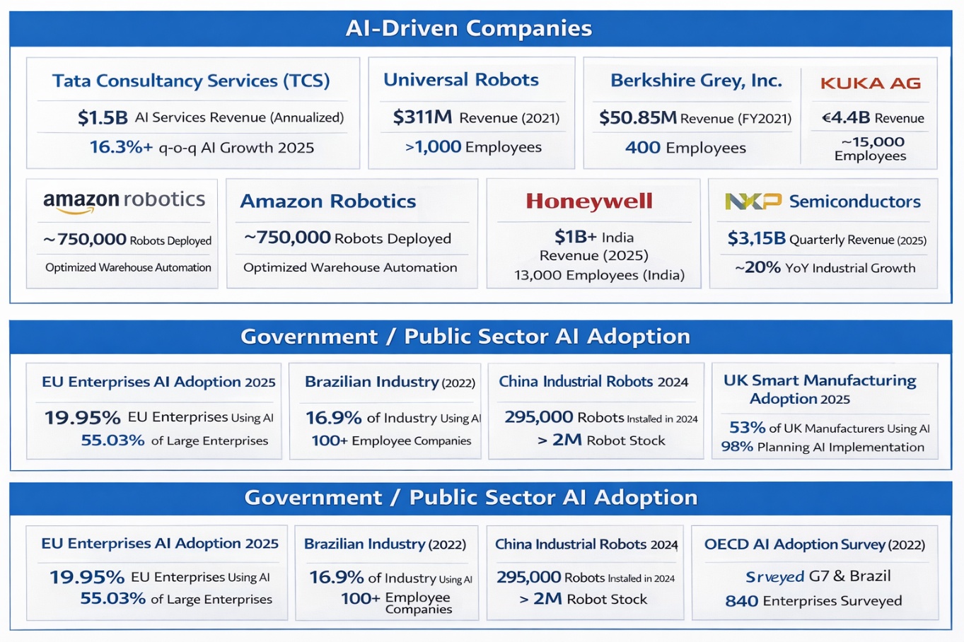 | China (2024) | 295,000 robots installed; accounts for 54% of global installations | AI-driven automation penetration in manufacturing, with predictive analytics and robotics playing a key role. |